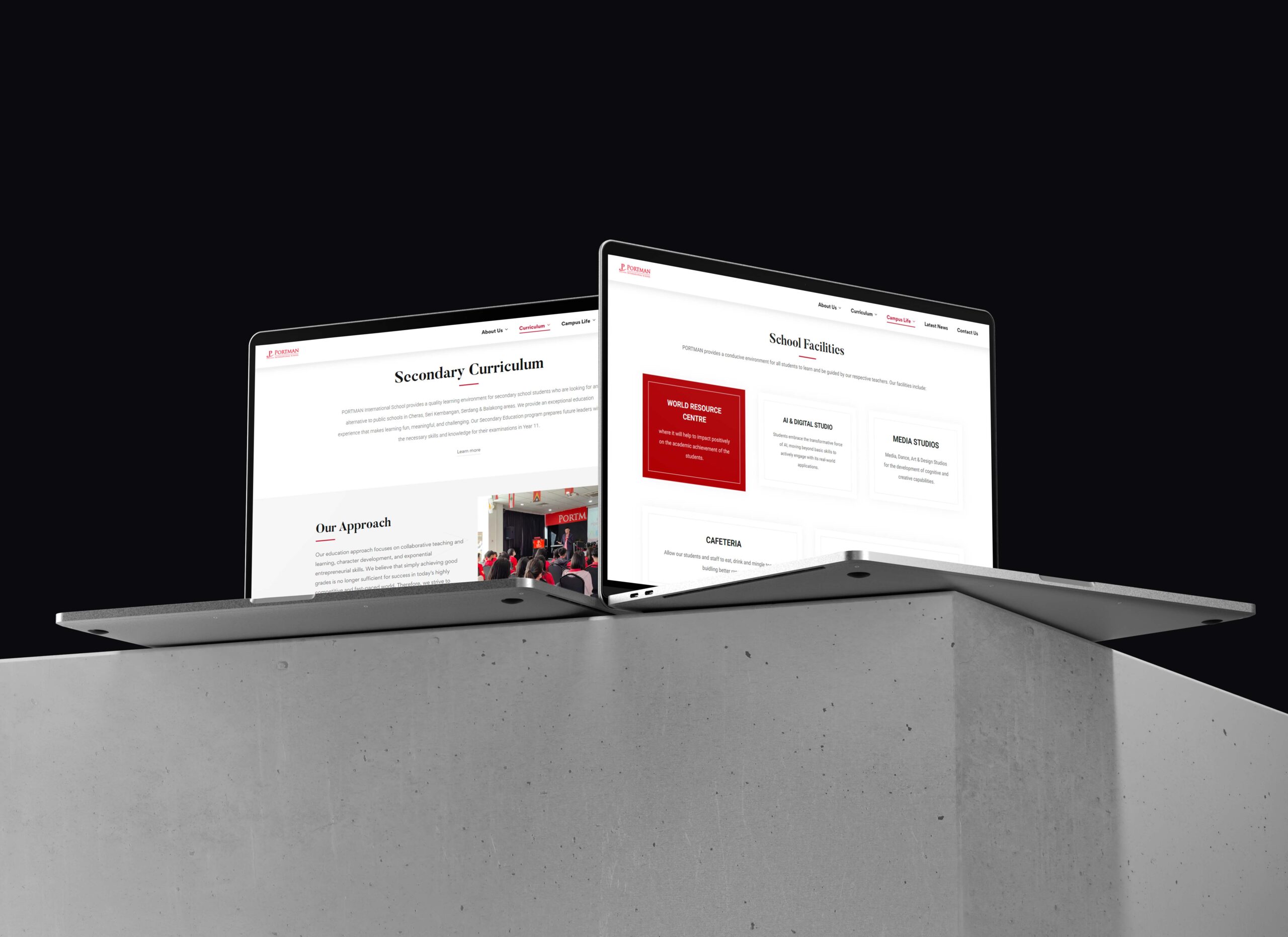 We developed a modern, formal web design that integrates PORTMAN’s signature red as a unifying accent color, symbolizing passion and excellence. A refined layout, elegant typography, and strong visual hierarchy present key information—curriculum details, admissions, and student life—in a clear and engaging way.